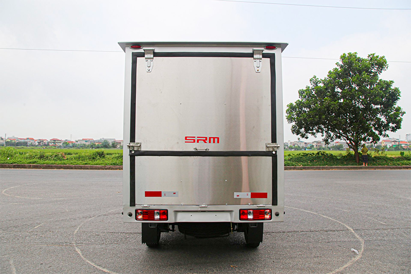 SRM K990 thùng cánh dơi có tải trọng 990kg,xe có kích thước thùng xe (DxRxC) là 4.295x1.590x2.255mm, kích thước lọt lòng thùng (DxRxC) là 2.430x1.380x2.445mm, Khoảng cách trục cơ sở dài 2.500mm. Thùng xe có kết cấu độc lập với cabin nên chắc chắn an toàn.